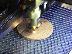 今度ばかりはさすがに何に使うのと周りに呆れられ度がMAXのレーザー加工機を購入。木材やアクリルなどの切断も出来る本格的なもので、試しにコルクコースターと切り株コースターに彫刻。