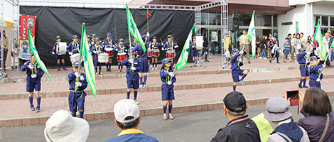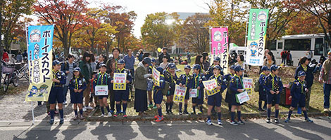 11月03日に開催されました「ふるさと名取秋まつり」にて鼓隊発表され、演奏後第19号災害義援金募金をされました名取第1団カブ隊さんの写真。