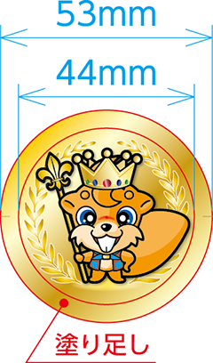 ●カンバッジデザイン…カンバッチは用紙を裏まで巻き込むため、実際のデザイン範囲の44mmよりそれぞれ上下左右4.5mmずつの塗り足しが必要となります。